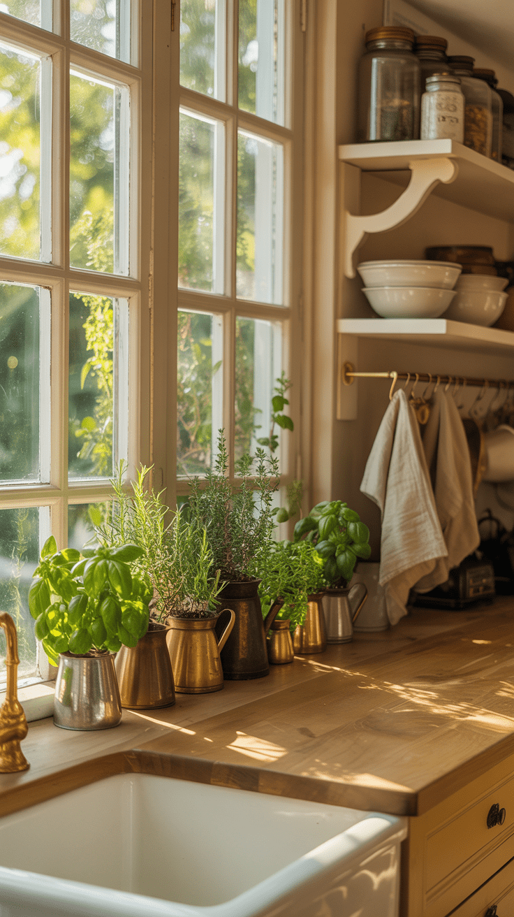 Mit dieser Idee kombinierst du nützliche Küchenkräuter und liebevolle Dekoration. Die nostalgischen Kännchen stärken den hyggeligen Charakter deiner Kochumgebung und inspirieren dazu, öfter selbst frische Zutaten zu verwenden.