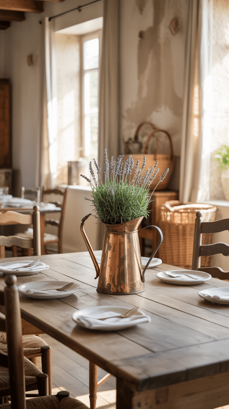 Der Clou liegt in der Kombination aus duftender Pflanze und abgenutztem Gefäß. Der unverfälschte Lavendelduft und die leuchtenden Farbtupfer verstärken das natürliche Ambiente. So wird dein Essbereich zum kleinen Landhaus-Traum.