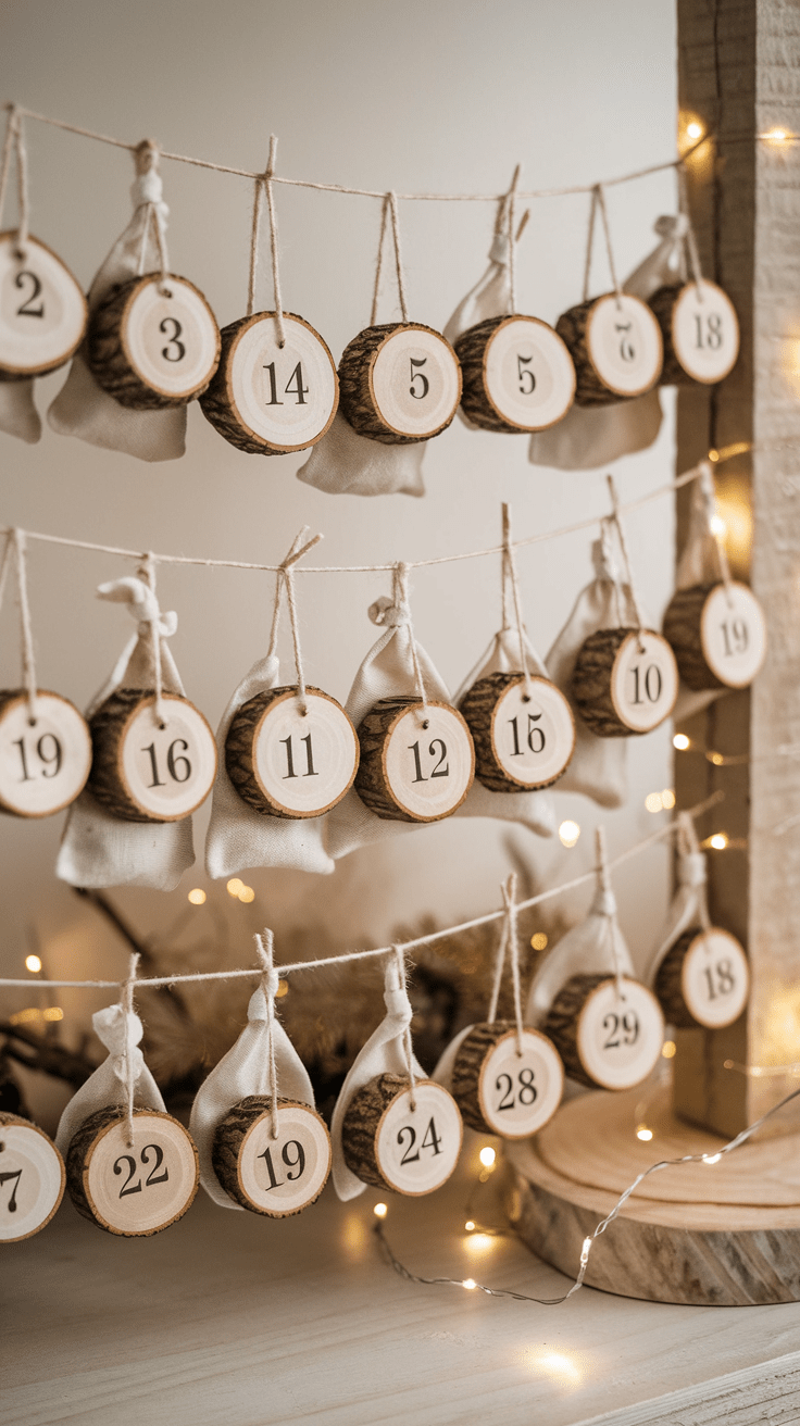 Ein Adventskalender aus Baumscheiben ist eine kreative Alternative zu klassischen Varianten. Er ist langlebig, individuell und passt perfekt zu einer natürlichen Weihnachtsdeko. Außerdem kannst du die Scheiben jedes Jahr neu bemalen oder anders anordnen.