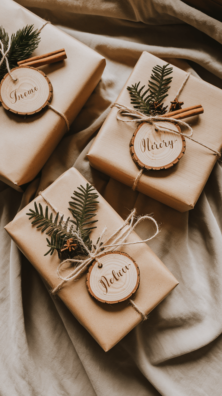 Ein Geschenk wirkt gleich viel liebevoller, wenn ein handgemachter Anhänger daran baumelt. Baumscheiben eignen sich dafür perfekt, da sie stabil sind und gleichzeitig festlich aussehen. Außerdem kann der Empfänger sie als Erinnerung aufheben oder später selbst als Deko nutzen.