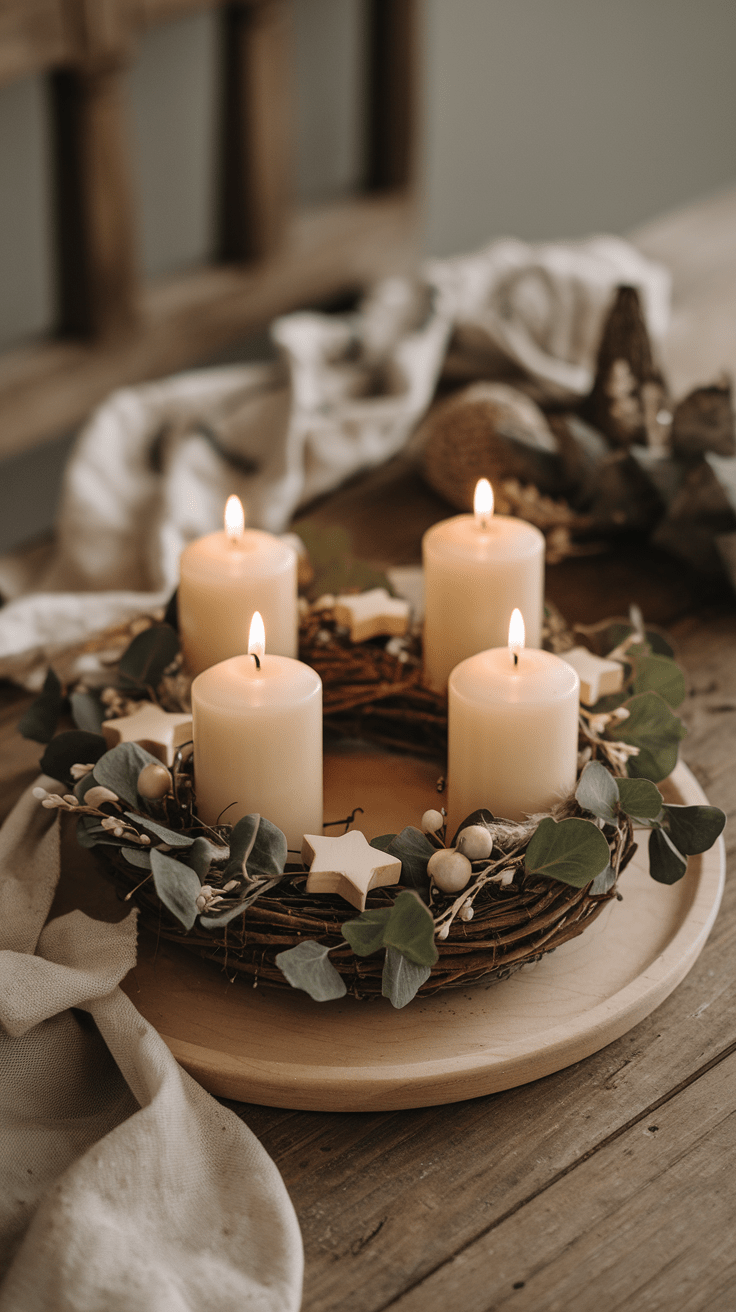 Der Adventskranz ist das Herzstück jeder Weihnachtsdeko – und in seiner natürlichen Variante strahlt er pure Ruhe und Eleganz aus. Statt bunter Kugeln und Schleifen setzt du hier auf getrocknete Elemente, schlichte Kerzen und natürliche Materialien. Moos, Eukalyptus, Zimtstangen, kleine Tannenzweige und Holzsterne ergeben zusammen ein wunderbar harmonisches Gesamtbild.