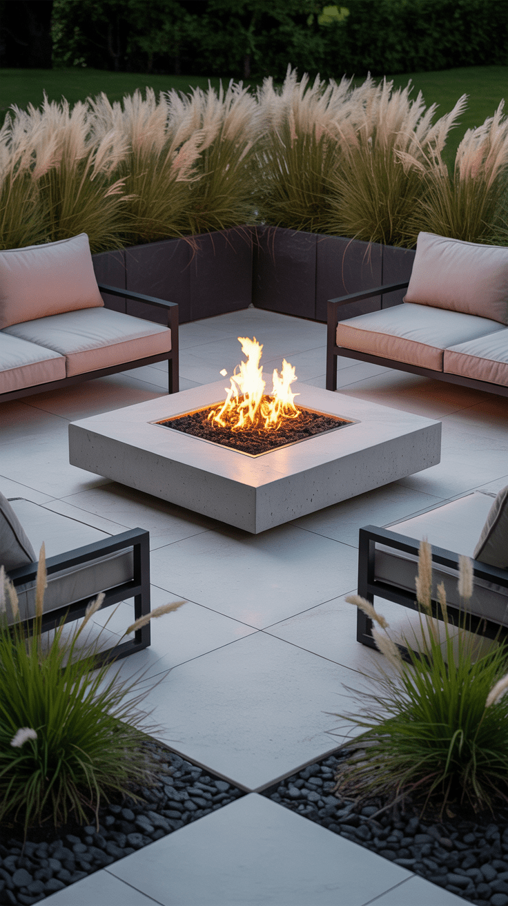 Reduziert, ruhig und sehr stilvoll. Eine moderne Feuerstelle setzt auf klare Formen und dezente Farben. Sie fügt sich besonders gut in zeitlose Gärten ein.