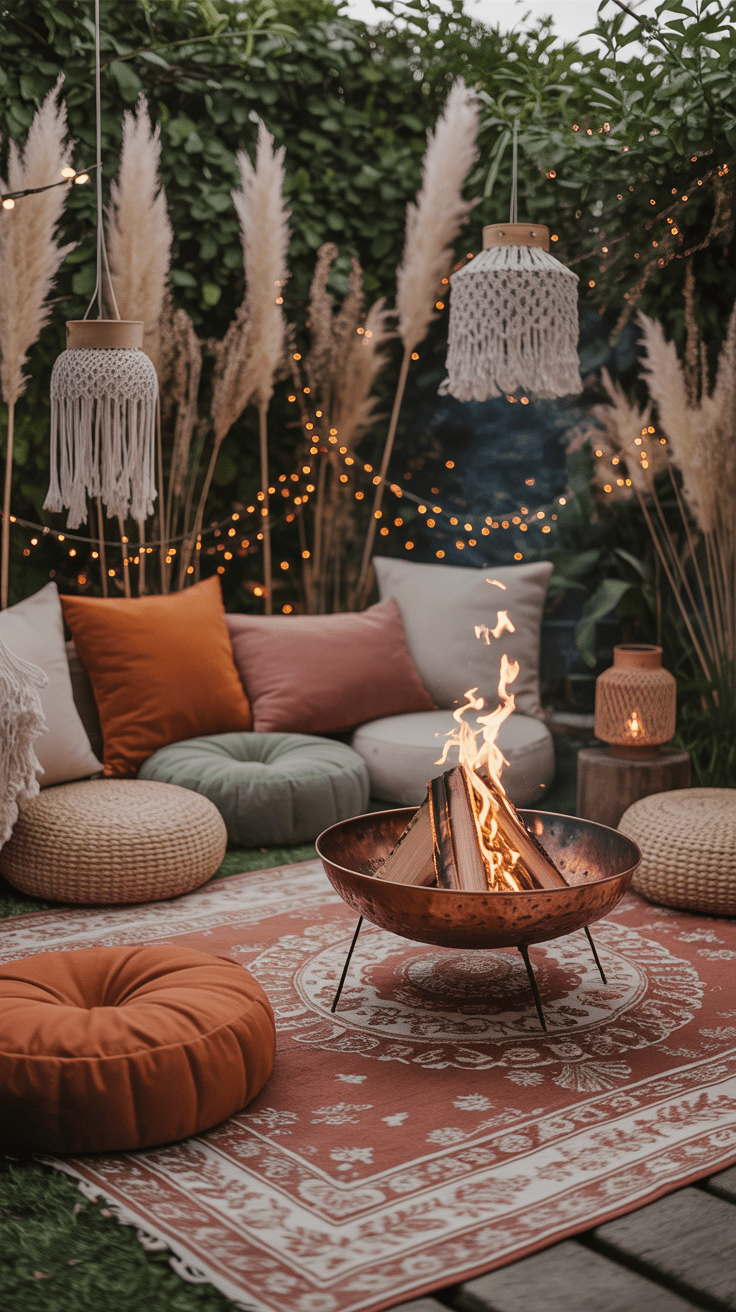 5. Boho-Feuerplatz mit Kissen und Teppichen