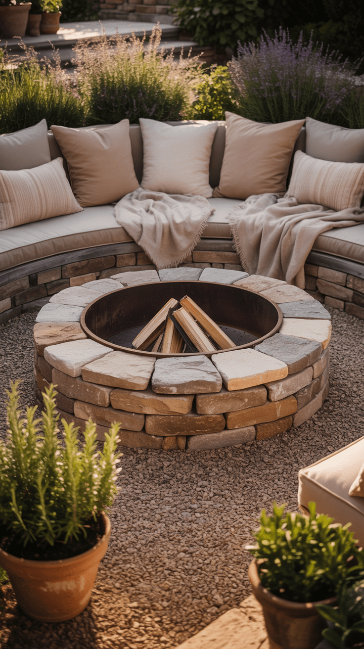 - Runde Feuerstelle aus Naturstein oder Klinker