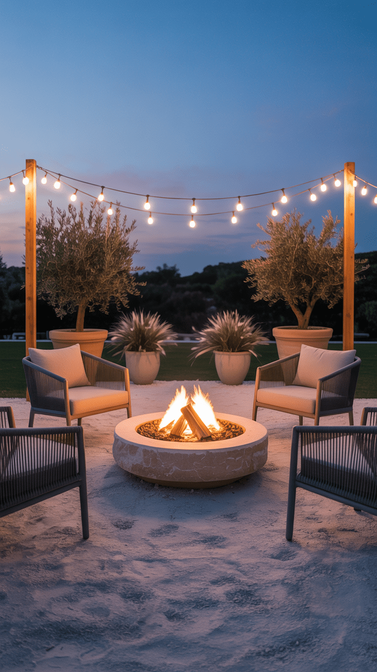 9. Feuerstelle mit Kiesfläche und Lichterketten