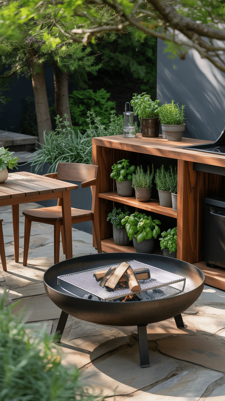 Für alle, die gerne draußen kochen: Diese Feuerstelle wird Teil der Sommerküche. Perfekt für Stockbrot, gegrilltes Gemüse oder Marshmallows.