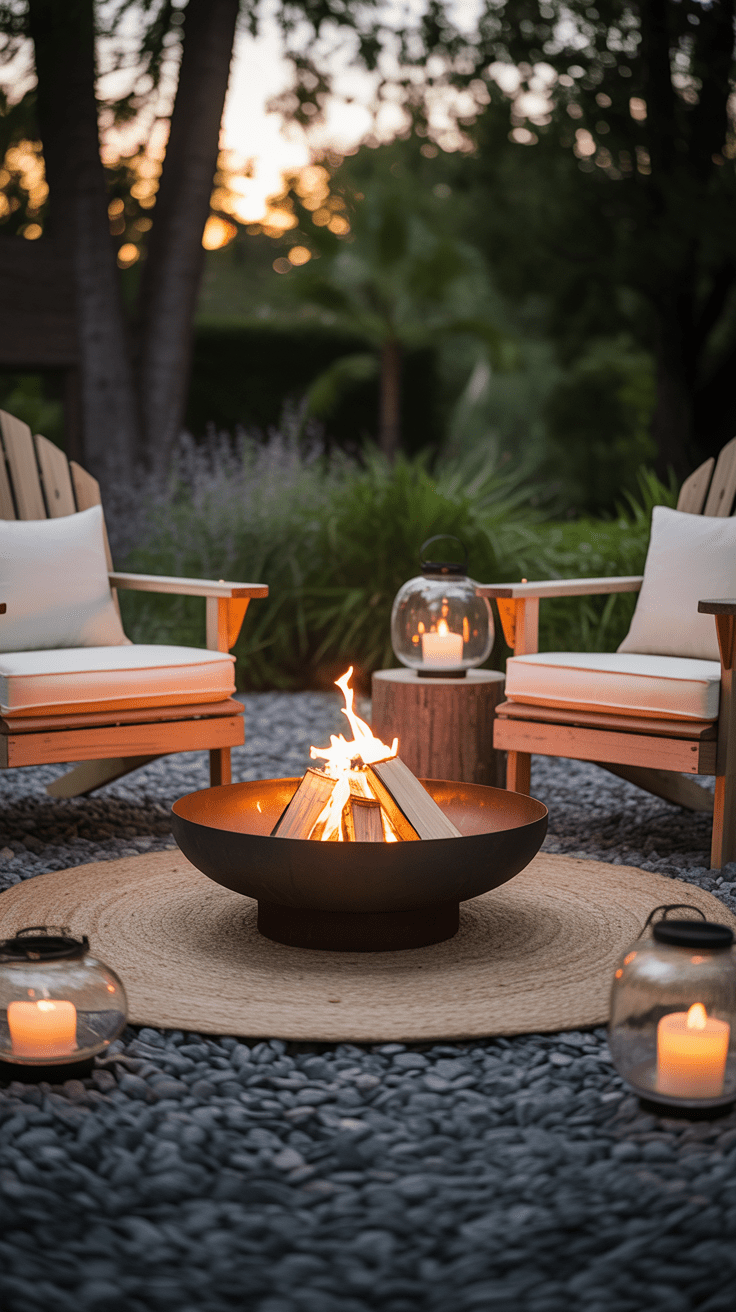 Kies schafft Struktur, sieht gepflegt aus und passt super zu Feuerstellen. Mit Lichterketten und bequemen Stühlen drumherum wird daraus ein stimmungsvoller Platz für lange Sommerabende.