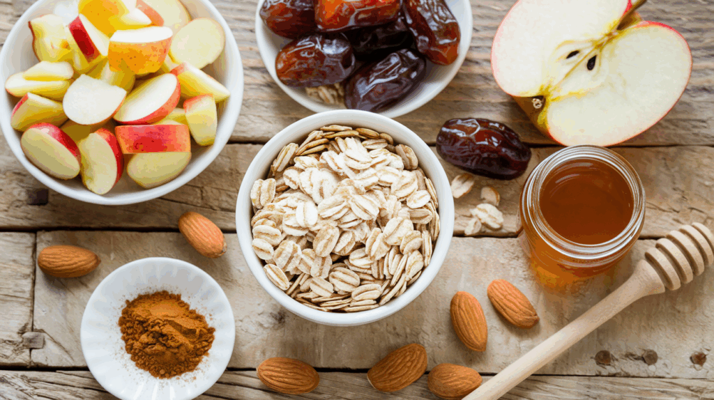 Essentielle Zutaten für Hafer-Apfel-Zimt Blissballs