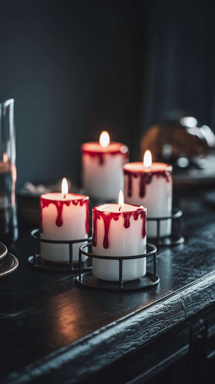 Kerzen mit rotem Wachseffekt sehen dramatisch und spooky aus. Sie wirken wie frisch aus einem Horrorfilm.