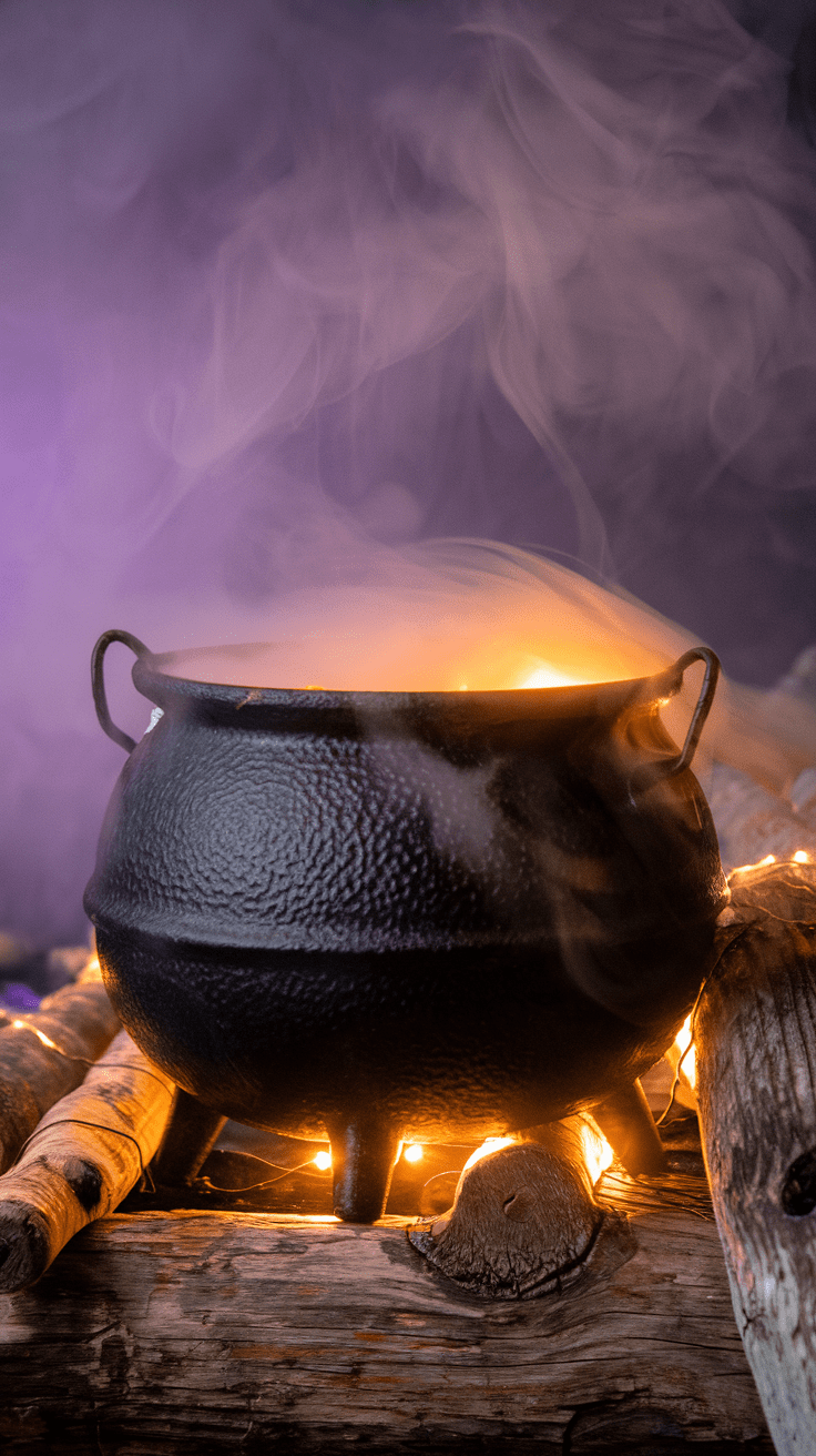 Ein dampfender Kessel macht deine Halloween-Ecke magisch. Das ist der Eyecatcher jeder Party.
