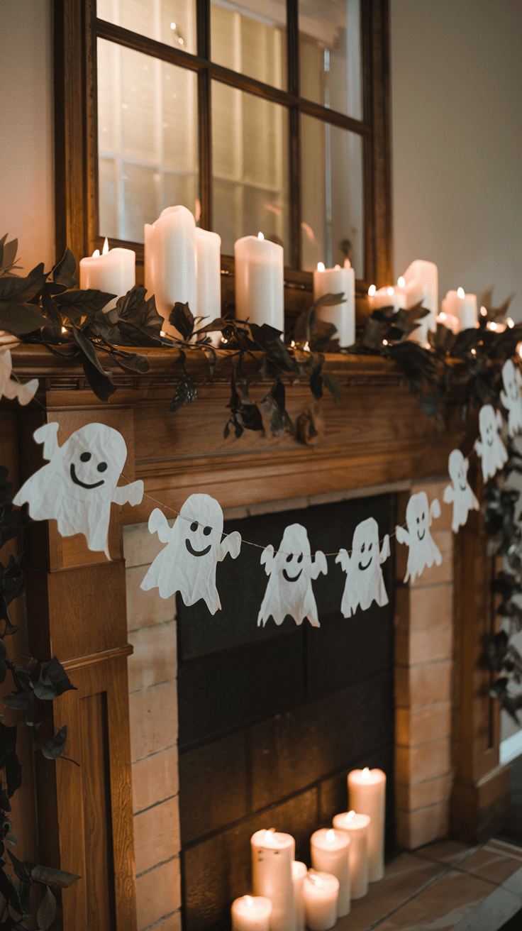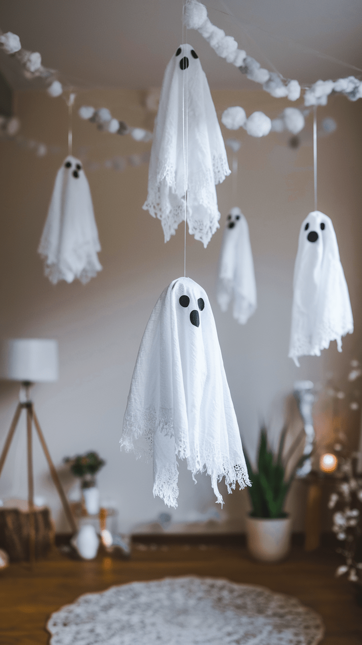 Kleine Geister, die an einer Schnur hängen, sehen süß und spooky zugleich aus.