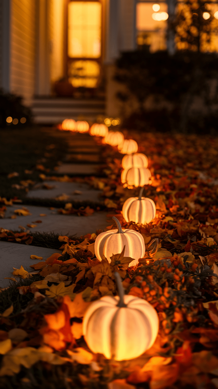 Ein beleuchteter Weg führt Gäste direkt in deine Halloween-Welt.