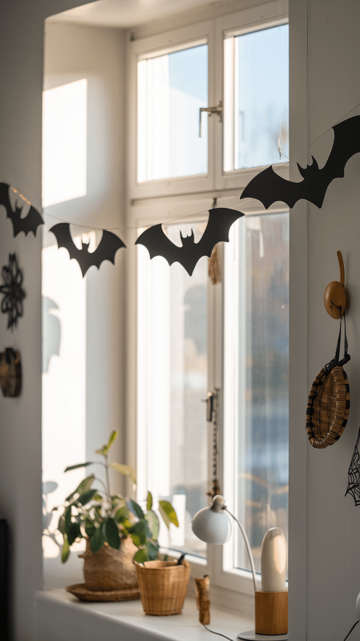 Fledermäuse dürfen an Halloween nicht fehlen. Als Girlande sind sie schnell gemacht und super vielseitig.