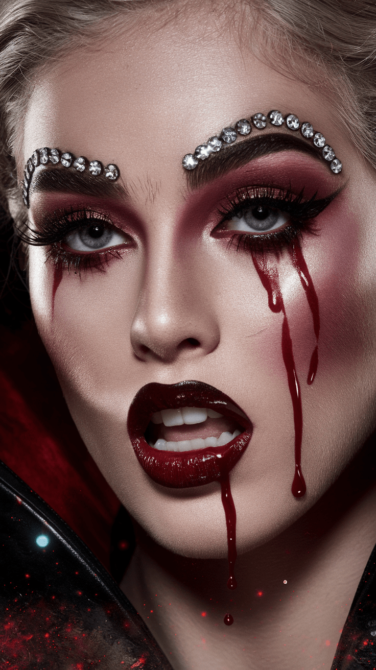 - Augen Details: Nutze roten Eyeliner oder Kunstblut, um Adern zu zeichnen, die von den Augen nach außen laufen.