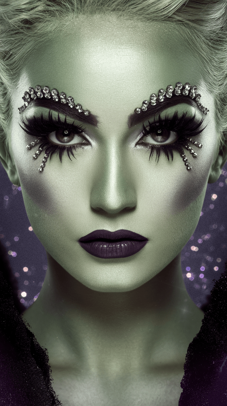 - Brauen: Betone die Augenbrauen dunkel und geschwungen. Ein leicht übertriebener Bogen verstärkt den magischen Ausdruck.