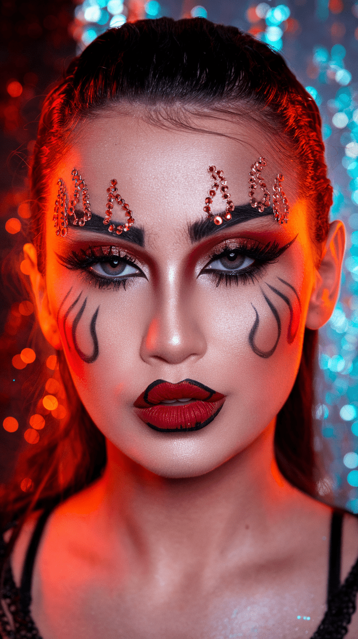 Dieser Look ist feurig und stark. Perfekt, wenn du auffallen willst und Lust auf ein dramatisches Makeup hast.