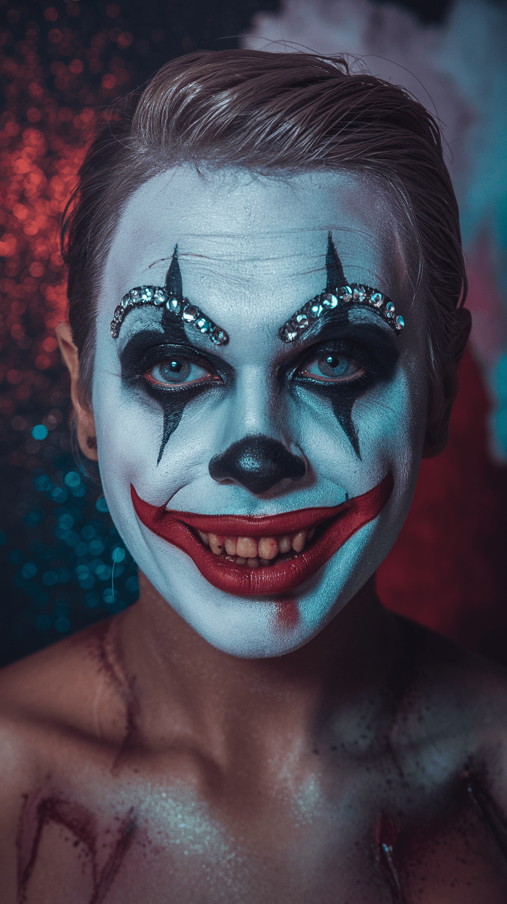 ✨ Tipp: Mit einem zerrissenen Clownkostüm und Handschuhen ist der Look perfekt für eine gruselige Nacht.