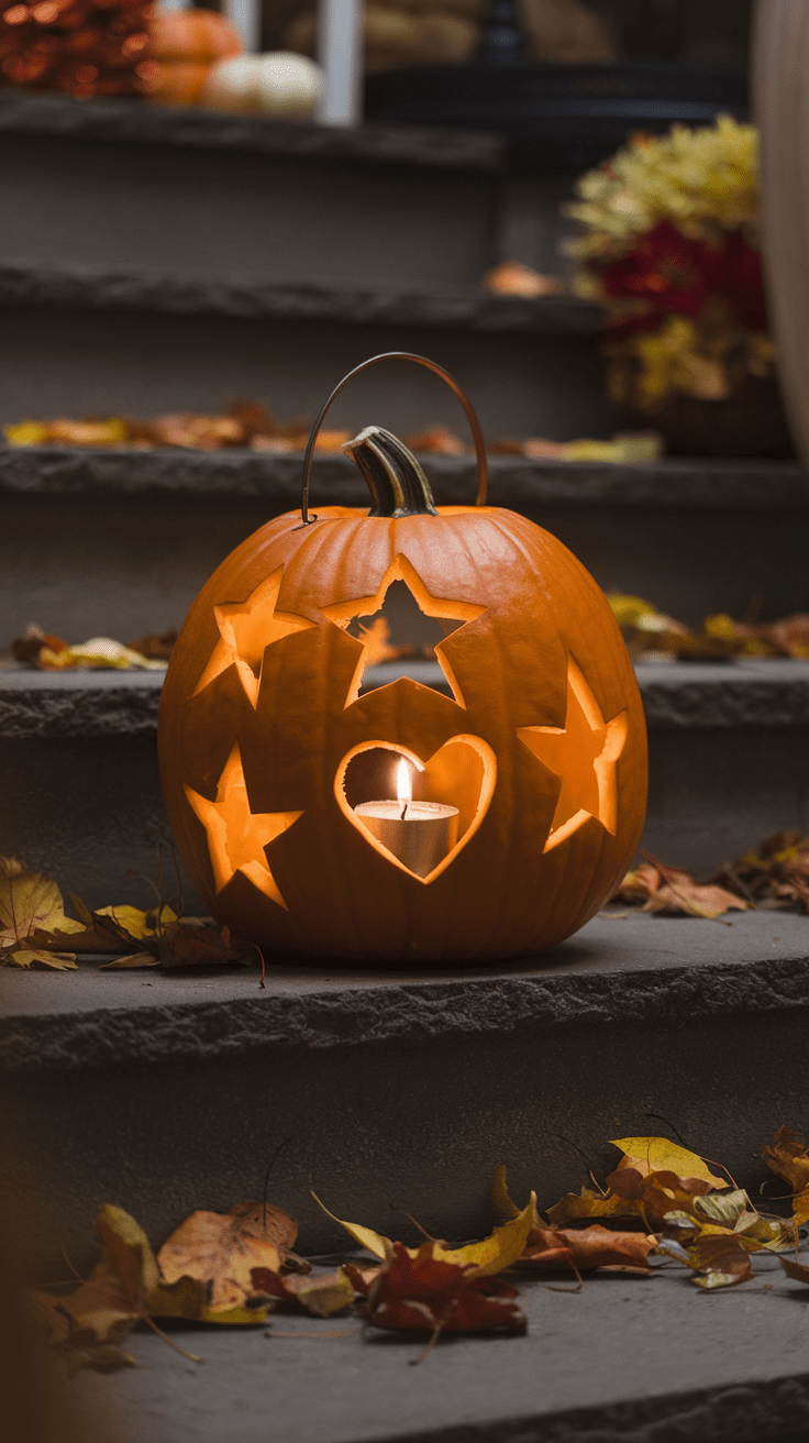 Kürbisse sind echte Multitalente – und als Windlicht haben sie einen kleinen Wow-Effekt. Ob mit klassischen Mustern oder kleinen Sternen und Herzen: Sie bringen sofort eine gemütliche und verspielte Stimmung in deinen Außenbereich.