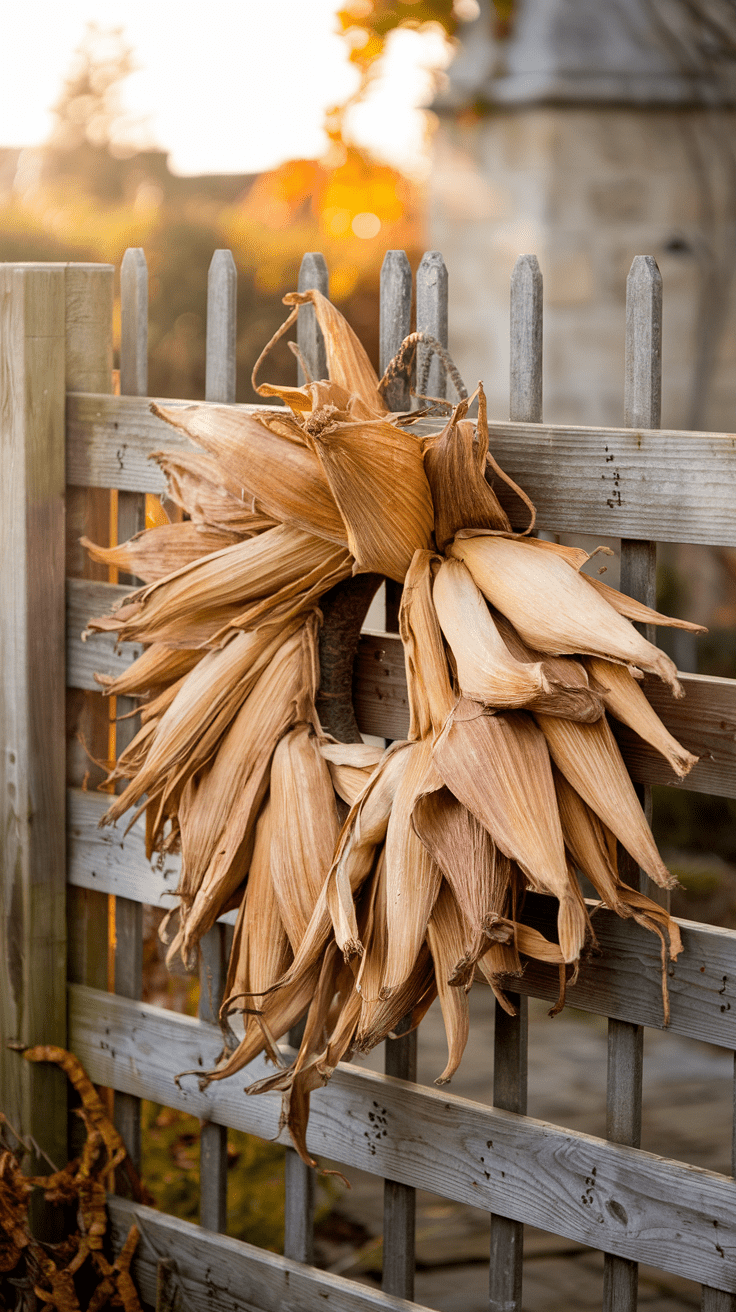 Kombiniere ihn mit kleinen Schleifen oder einem „Welcome“-Schild. Wenn du magst, kannst du Maisblätter auch mit etwas Farbe akzentuieren – zum Beispiel Weiß oder Gold für einen modernen Look.