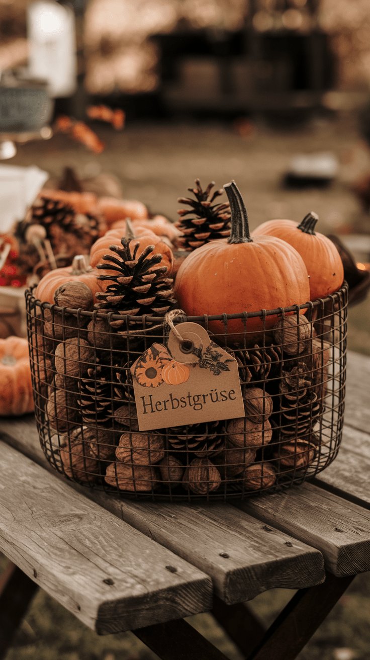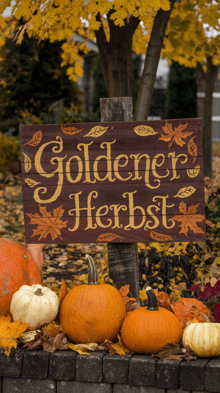 Verziere den Rand mit einer kleinen Kürbiskette oder hänge einen Mini-Kranz daran. Wenn du magst, kannst du auf der Rückseite ein Schild für die nächste Saison vorbereiten – so sparst du dir Arbeit im Winter.
