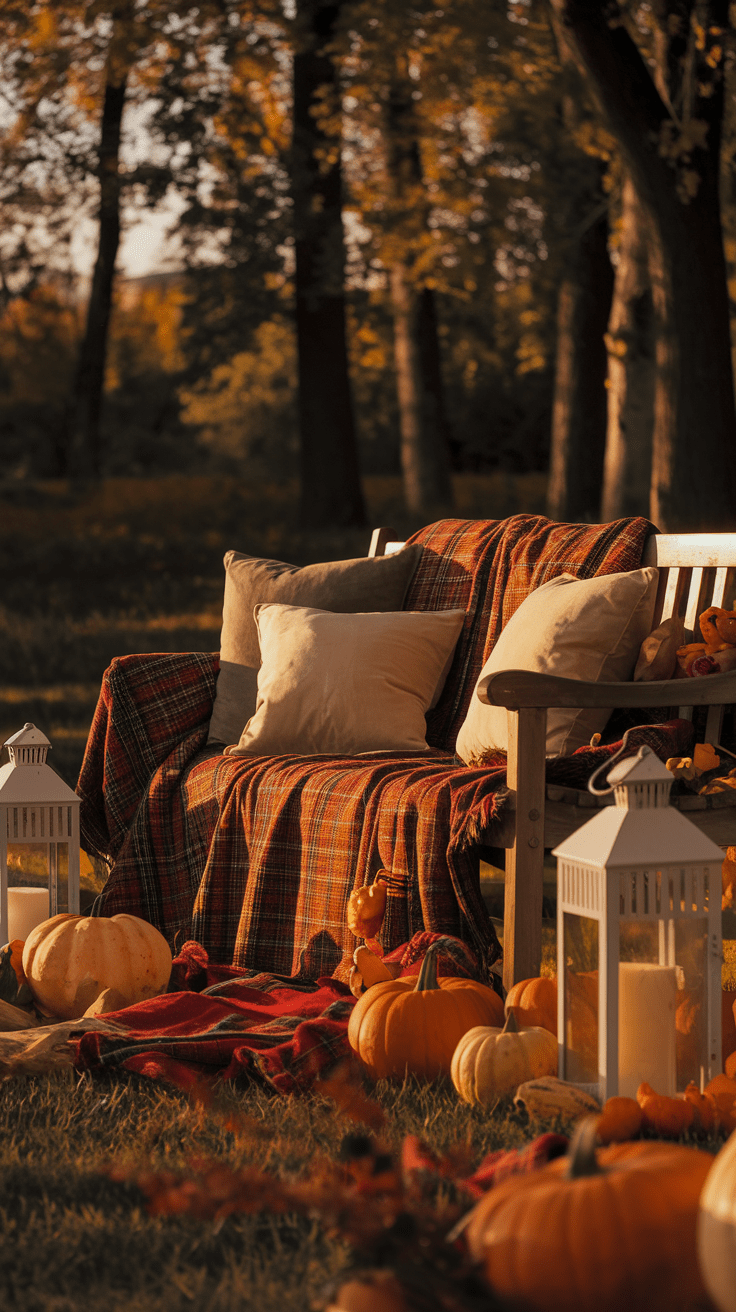 - Stelle ein paar Kürbisse daneben oder sogar auf die Sitzfläche.