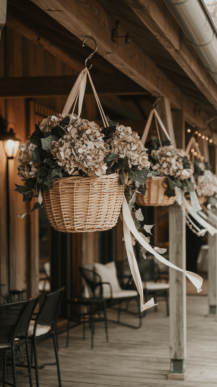 - Hänge Weiden- oder Rattankörbe an Haken, Geländer oder Äste.