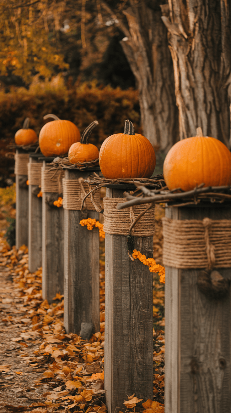 Einfach, aber unglaublich wirkungsvoll: Kürbisse auf Holzstelen wirken sofort eindrucksvoll, besonders am Eingang oder entlang eines Gartenweges. Sie sind schnell gemacht, brauchen kaum Material und wirken rustikal und elegant zugleich.