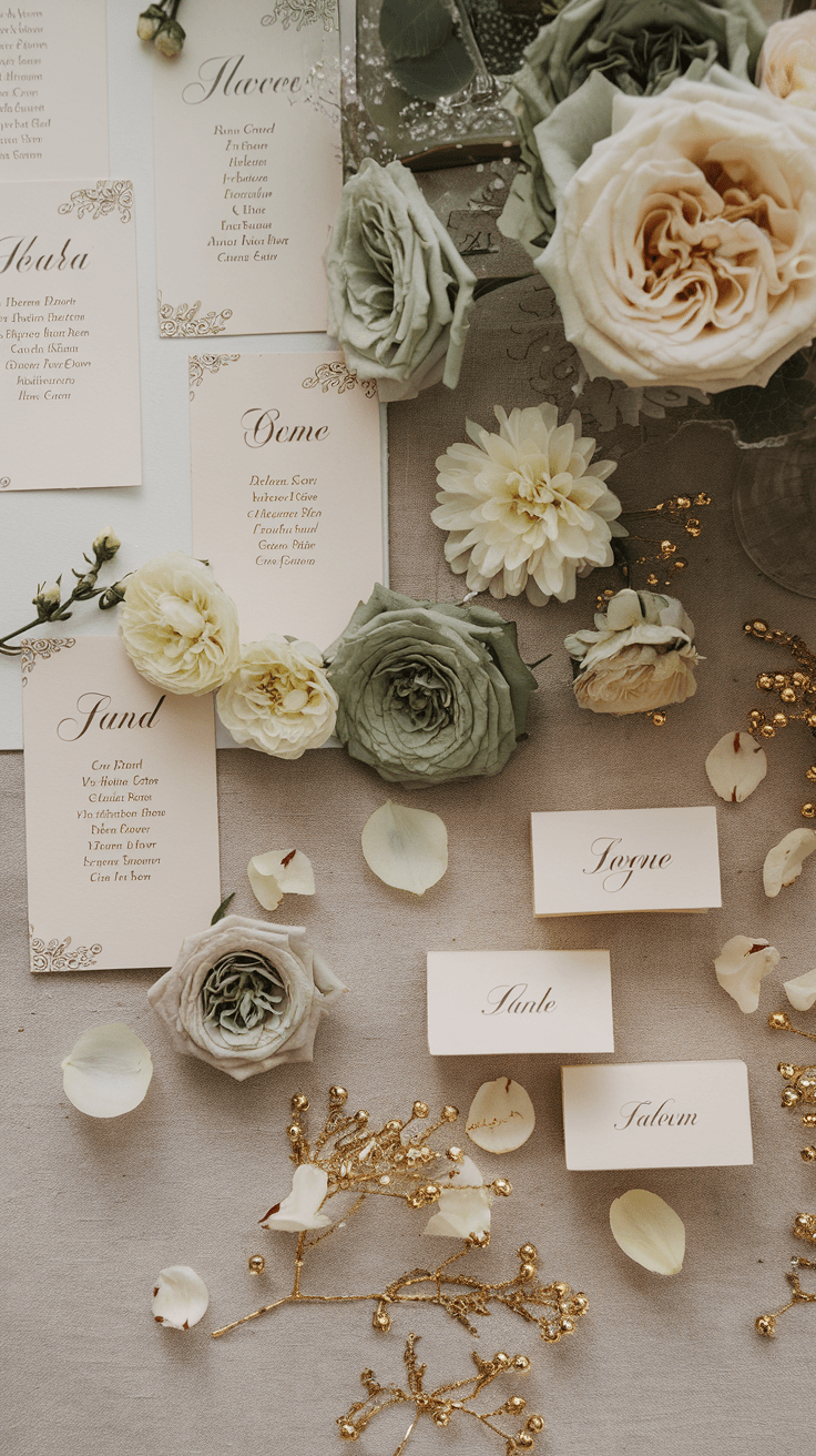 Für die Deko reichen kleine Namenskarten, hübsch beschriftet und farblich abgestimmt auf euer Konzept. Du kannst sie selbst basteln oder online bestellen – ganz wie du magst.