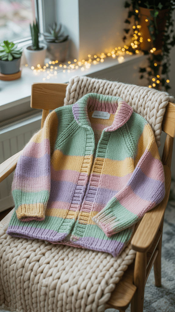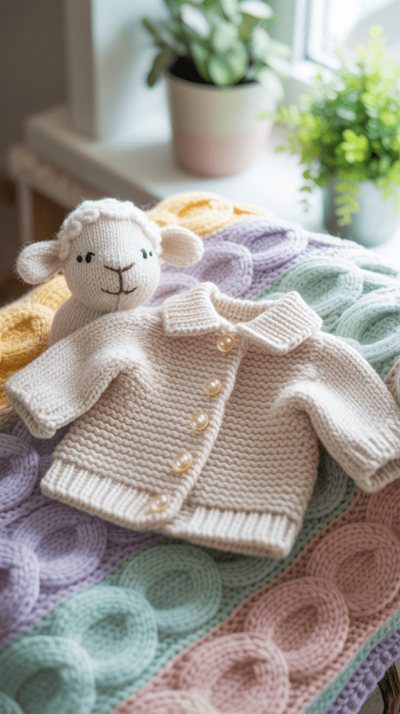 Eine Babyjacke im Perlmuster ist weich und blickdicht. Sie wärmt kleine Entdecker und wächst meist lange mit. Ich stricke sie in einem Stück, um Nähte zu sparen.