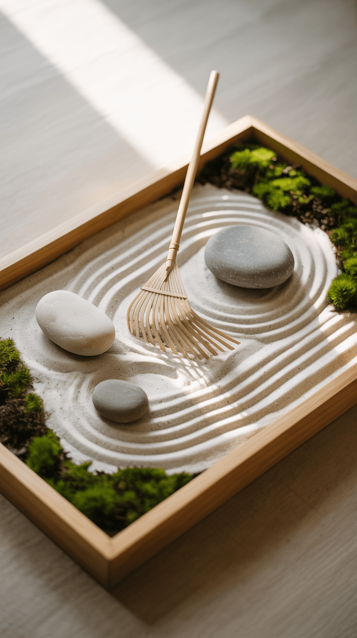 Ein Zen-Garten im Mini-Format ist ideal für kleine Flächen oder den Balkon. Er bringt sofort Ruhe in deinen Alltag und eignet sich sogar für drinnen. Die Idee stammt aus der japanischen Tempeltradition, wo Kiesgärten genutzt wurden, um den Geist zu fokussieren und Klarheit zu finden. Das Schöne: Du brauchst kaum Platz und kannst deine Mini-Oase nach Lust und Laune verändern.