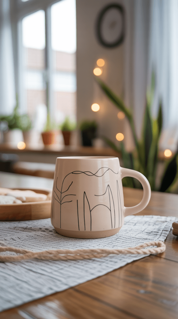 Diese Idee wirkt modern, ruhig und zeitlos. Gerade auf Tassen kommen feine Linien besonders schön zur Geltung, weil die Form automatisch für eine elegante Wirkung sorgt. Wenn du noch unsicher bist, ist das der perfekte Einstieg.