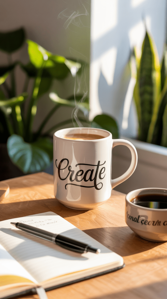 Halte deine Motive einfach. Gerade auf Tassen wirkt Minimalismus oft am schönsten.