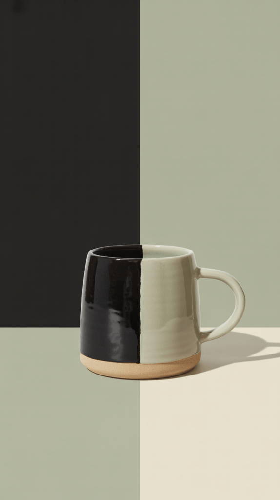 Mit nur zwei Farben kannst du einen modernen und hochwertigen Look erzeugen. Diese Tassen wirken oft besonders stilvoll.