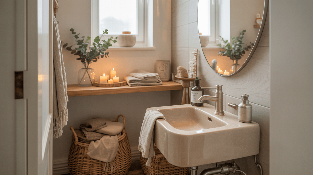 Auch ein kleines Gäste-WC kann zu einem stilvollen Raum werden, der deine Gäste überrascht. Mit hellen Farben, cleverem Stauraum und ausgewählten Details entsteht eine Atmosphäre, die gleichzeitig praktisch und einladend wirkt.