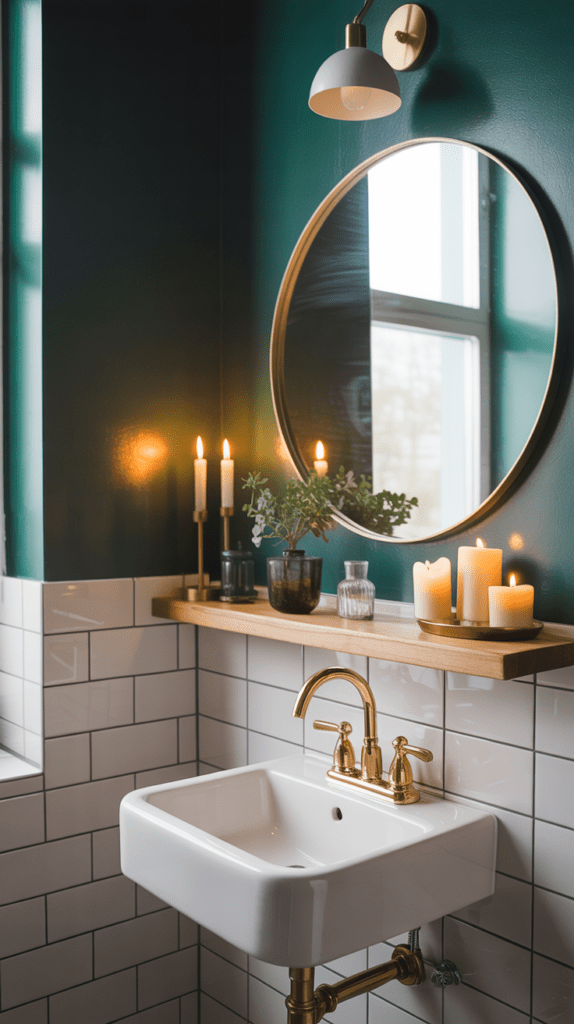 Auch dunkle Farben können in kleinen Räumen funktionieren. Eine einzelne dunkle Wand verleiht dem Gäste-WC Tiefe und Eleganz.