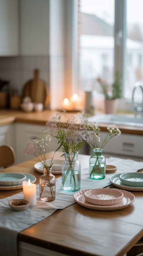Um das Konzept umzusetzen, wählst du einzelne Flächen wie Rückwände oder Schränke in Pastell. Ergänze helle Holztöne und weiße Akzente, um ein ausgewogenes Gesamtbild zu erzeugen. Achte darauf, nicht zu viele Farben zu mischen, sondern eine Hauptfarbe zu wählen und mit zwei Nuancen zu kombinieren. So bleibt deine Küche im Einklang und luftig.