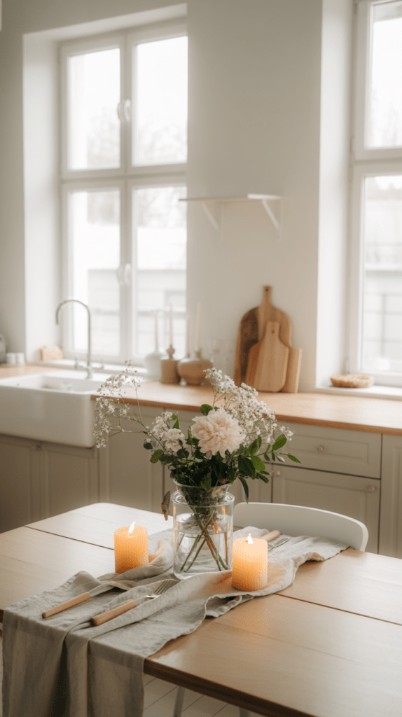 Die grüne Akzentwirkung funktioniert, weil Pflanzen organische Formen ins klare Design einführen. Sie beruhigen die Sinne und schaffen frische Farbkontraste. Die Kombination aus minimaler Fläche und lebendigem Grün wirkt besonders elegant. Jeder Blick auf die Pflanzen tut gut und erinnert an den Ursprung der Zutaten.