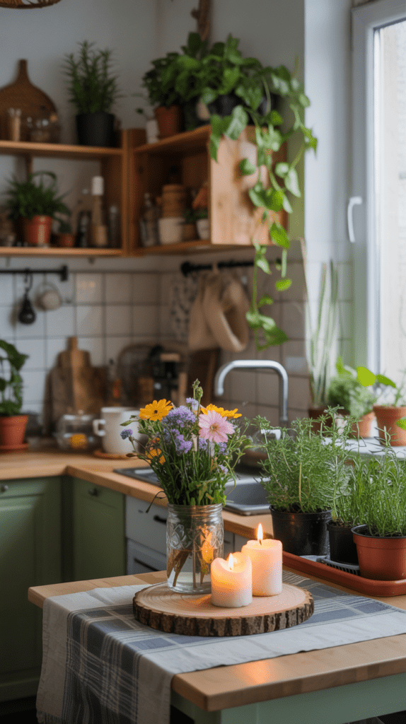 Pflanzen bringen Leben in jede offene Küche und wecken Gefühle von Gesundheit und Natürlichkeit. Schon wenige Topfpflanzen auf einer kleinen Küchenzeile lassen den Raum frisch und modern erscheinen. Mit hängenden Kräutertöpfen oder Sukkulenten schaffst du grüne Highlights. Sie verbinden den Kochbereich mit natürlichen Elementen und fördern achtsame Momente beim Zubereiten.