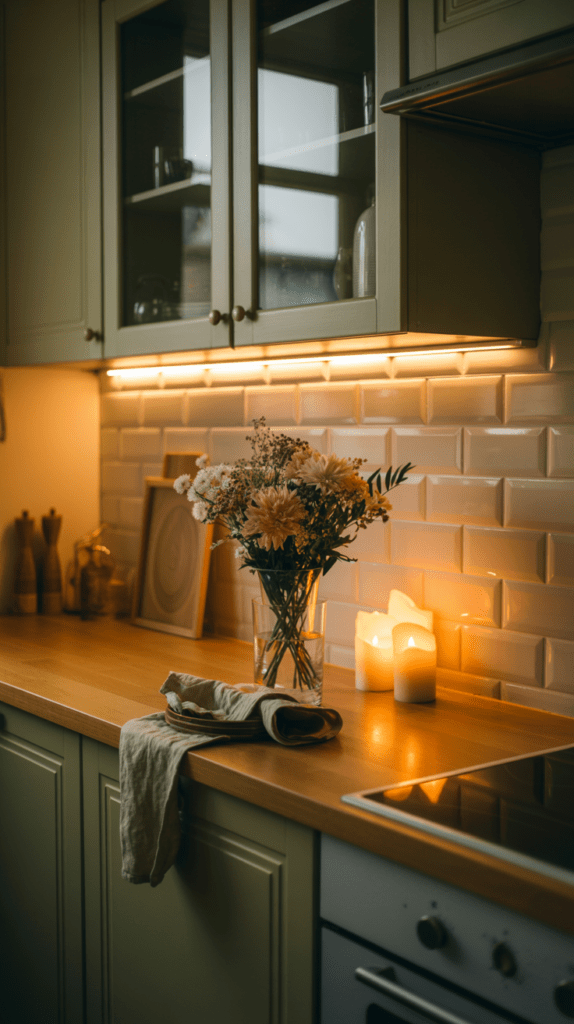 Unterbauleuchten am Unterschrank schaffen sanfte Beleuchtung auf der Arbeitsfläche und wecken eine behagliche Stimmung. Sie setzen bestimmte Zonen in Szene, ohne die gesamte Küche grell zu erhellen. Du bestimmst, wo die intensivere Ausleuchtung hingehört, und hältst gleichzeitig das Ambiente entspannt. Kleine LED-Streifen sorgen für eine gleichmäßige Lichtstreuung.