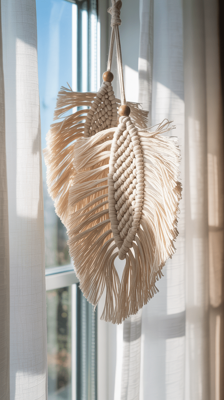 11. Fensterdeko aus zarten Makramee-Federn