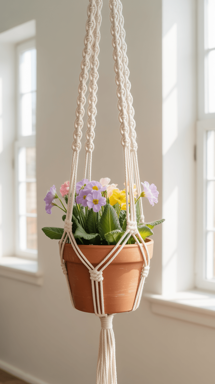 9. Makramee-Pflanzenampel mit Frühblühern