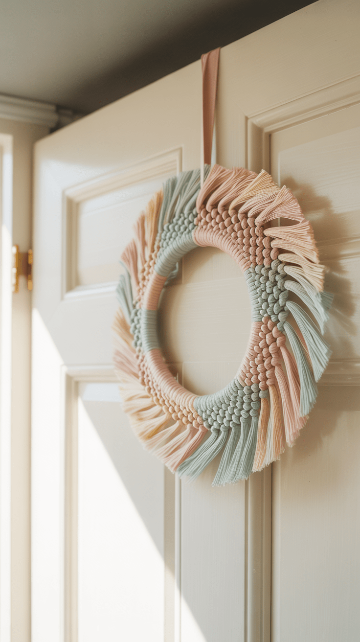 12. Makramee-Ostertürkranz in Pastellfarben