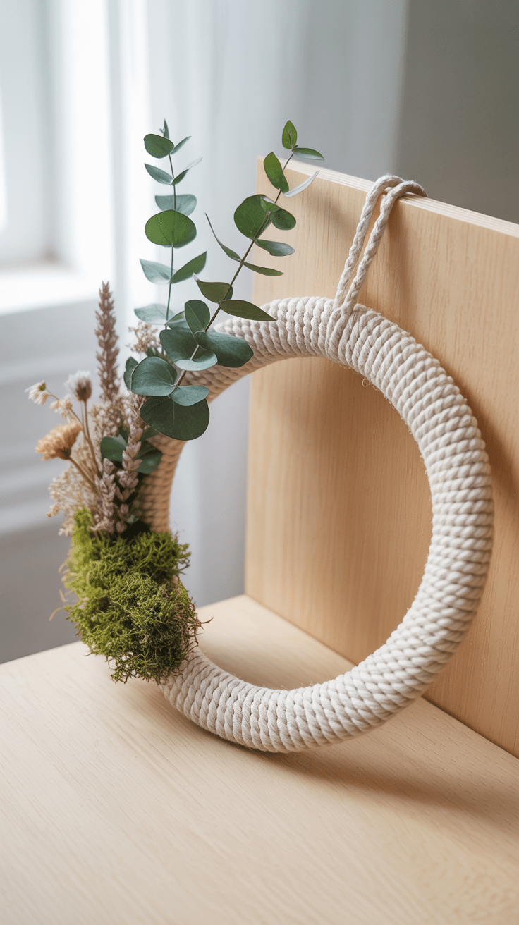 Knüpfe einen stabilen Grundring aus festen Knoten und bringe im Anschluss einzelne Zweige mit feinem Draht an. Achte darauf, die Pflanzenteile gleichmäßig zu verteilen und den Kranz nicht zu überladen. So bleibt die Deko luftig und entspannend.