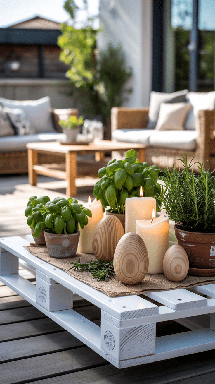 Ein schlichtes Regal aus Holzpaletten erhält durch fein ausgesägte Osterelemente einen frühlingshaften Anstrich. Du integrierst kleine Hasen- oder Eiermotive in die Paletten, um gezielte Akzente zu setzen. So entstehen offene Nischen, die sich hervorragend für Kerzen oder Pflanztöpfe eignen. Gleichzeitig bleibt die robuste Struktur der Paletten erhalten.