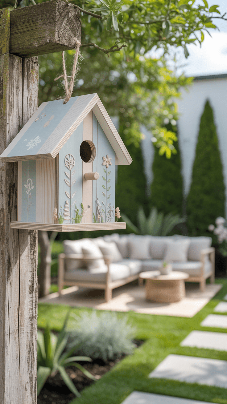 Ein Vogelhaus aus Holz wird mit zarten Ostermotiven zum charmanten Hingucker im Garten. Kleine Hasensilhouetten oder eingravierte Eier verleihen dem Häuschen eine verspielte Note. Während die Vögel zum Futter ein- und ausfliegen, genießt du die handwerkliche Kunst. Die Kombination aus Funktion und Dekoration wirkt besonders harmonisch.