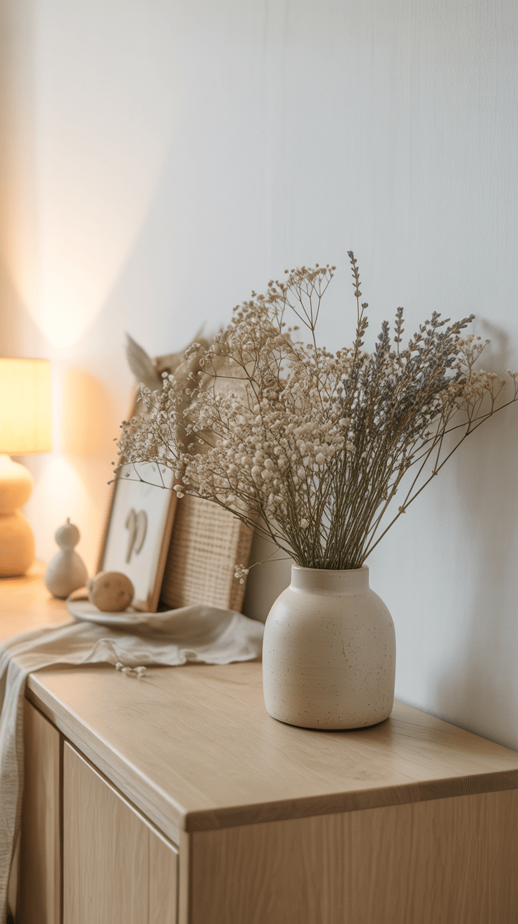 • Getrocknete Blüten oder Zweige in hellen, natürlichen Farbtönen.