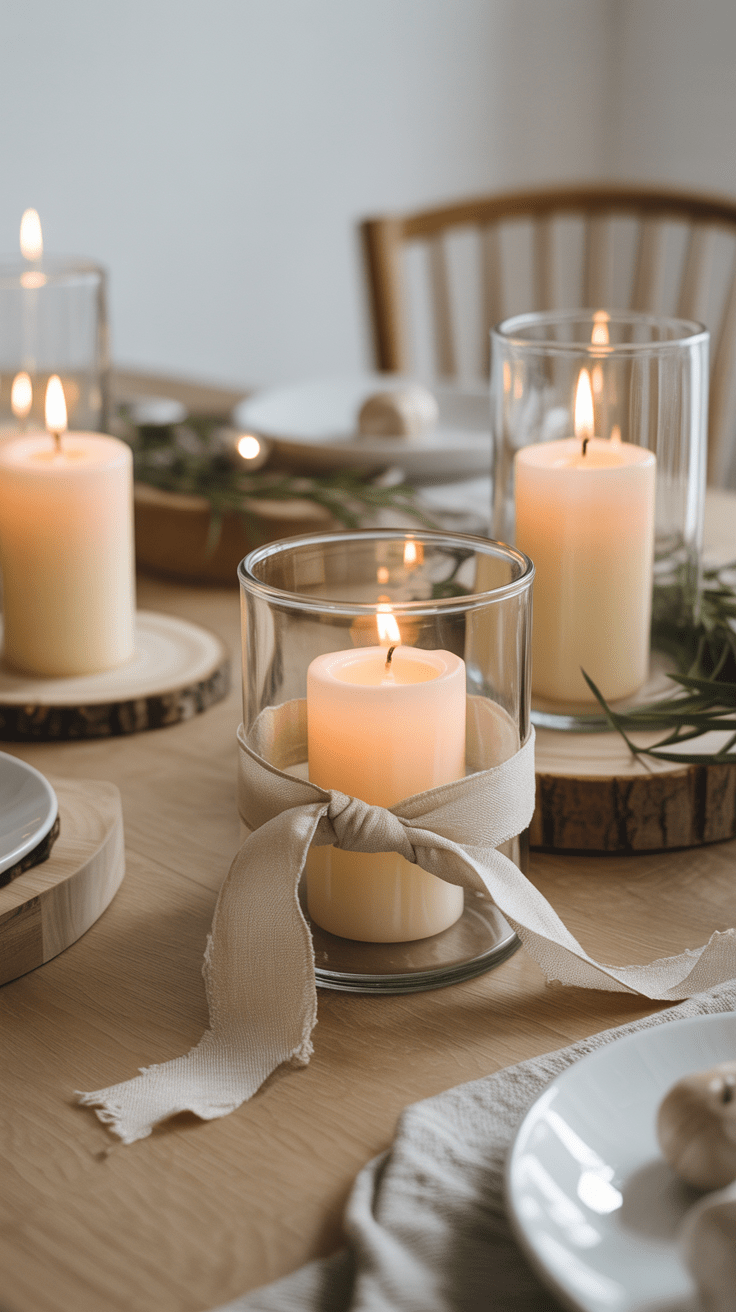 • Schlichte Stumpenkerzen in Creme oder Sandtönen.