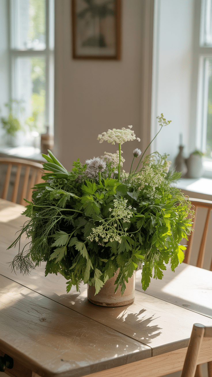 • Frische Wildkräuter oder locker gebundene Wiesensträuße.