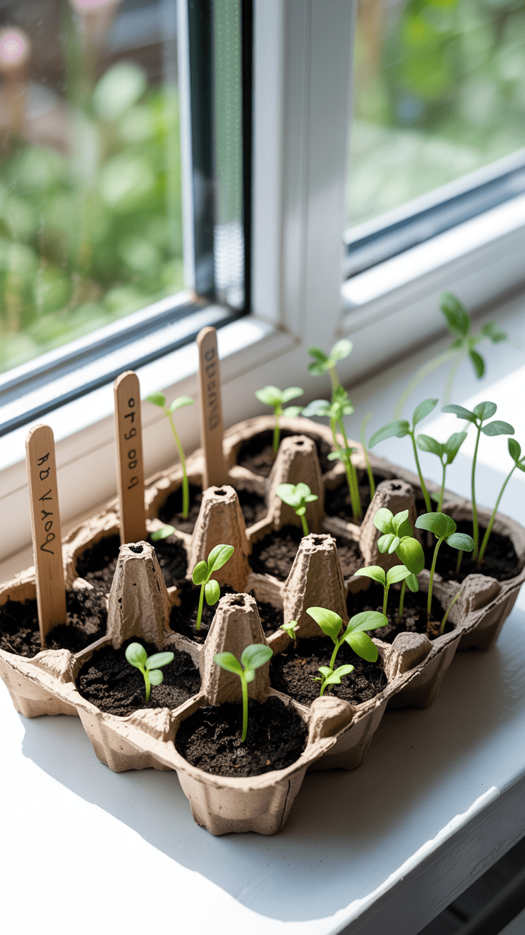 Die reduzierte Form des Eierkartons wirkt zugleich minimalistisch und verspielt. Jede Mulde beherbergt eine Pflanze, die im Laufe der Wochen grünes Leben zeigt. Die Kartonrillen unterstützen die Wurzelbildung und bieten ausreichend Platz für junge Keimlinge. Mit dieser DIY-Idee förderst du Neugier auf eigenes Gärtnern und frische Aromen in der Küche.