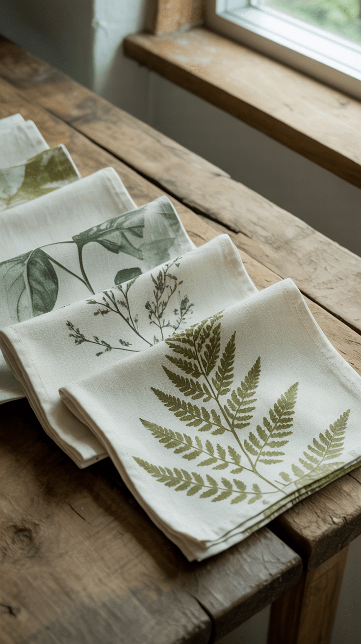 12. Stoffservietten mit Pflanzen-Druck